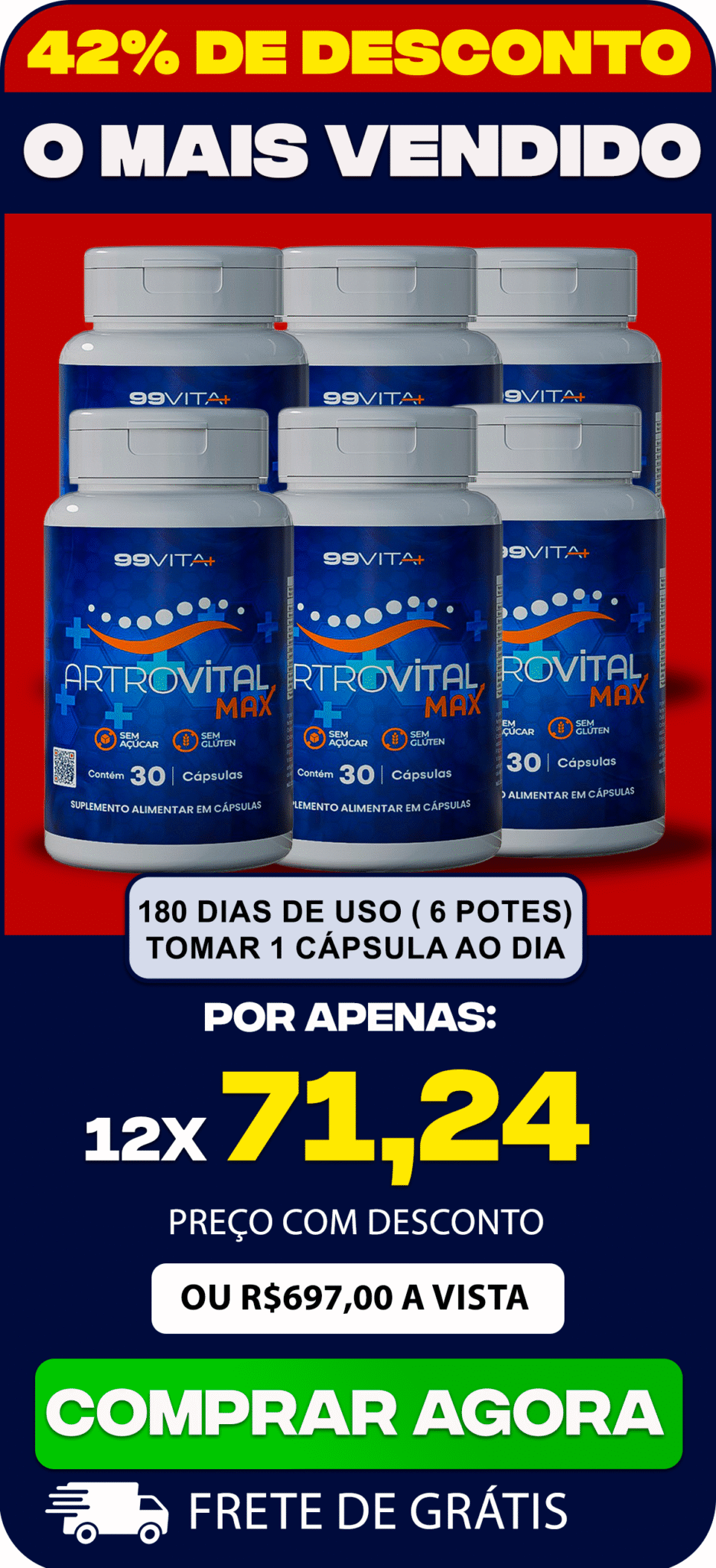 O Artrovital Max trabalha para reequilibrar os processos que mantêm as juntas saudáveis, ajudando a reduzir incômodos e prevenir limitações que atrapalham a mobilidade diária.